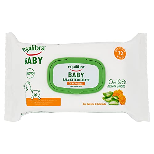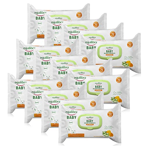 Equilibra Baby, Baby Salviette Delicate-Detergenti, Salviette per Neonati e Bambini, per la Detersione della Pelle ad Ogni Cambio Pannolino, a Base di Aloe Vera, 12 Pezzi da 72 Pezzi