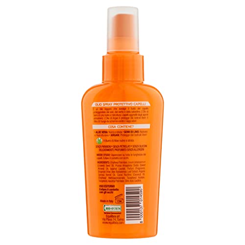 Equilibra Solari, Olio Spray Protettivo Capelli, Protezione Capelli Sole e Mare, Olio per Capelli a Base di Aloe Vera, Semi di Lino e Olio di Argan, Spray Capelli Leggero con Filtro Solare, 100 ml