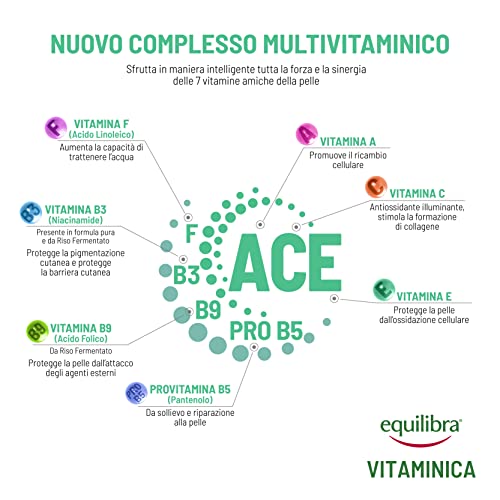 Equilibra Viso, Vitaminica, Ampolle Vitaminiche Ricostituenti, Siero Viso con Complesso Multivitaminico, Ceramidi Vegetali e Fitosfingosine, Azione Ricostituente, 7x2,5 ml