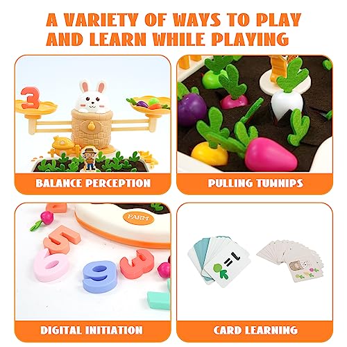 Set di accessori completo: questo set di giocattoli bilancianti viene fornito con 48 carte, 12 ravanelli e 10 numeri in colori ricchi per migliorare l'esperienza di apprendimento e mantenere i bambini impegnati per ore. Il tuo bambino può imparare a contare, addire, sottrazione e altri concetti matematici di base durante il gioco.