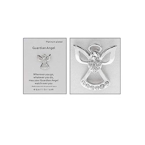 Equilibrium - Spilla Angelo Custode, con messaggio speciale, placcata in platino