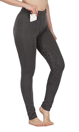 Avon Equine Equine - Pantaloni da equitazione da donna, in silicone, con seduta completa, in cotone/lycra, di alta qualità, colore: blu navy o nero, Donna, Grigio, UK 12 (30-Inch)