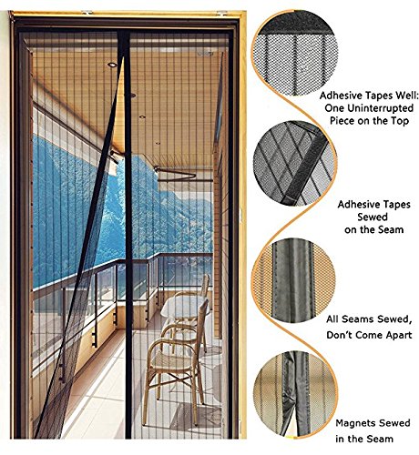 Aria fresca in: Questa magica rete di zanzara è gas permeabile e trasparente. Aprire la porta e godere di aria fresca senza mosche. Questo schermo mosca con chiusura magnetica può essere facilmente collegato alla porta del balcone, camera da letto, cucina, stanza per bambini o porta scorrevole.