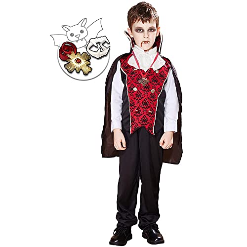 【SET COMPLETO DELUXE】 Questo costume include tutto! Viene fornito con una collana e denti da vampiro finti! I bambini che indossano questo costume da vampiro vinceranno sicuramente il premio durante il viaggio dolcetto o scherzetto.