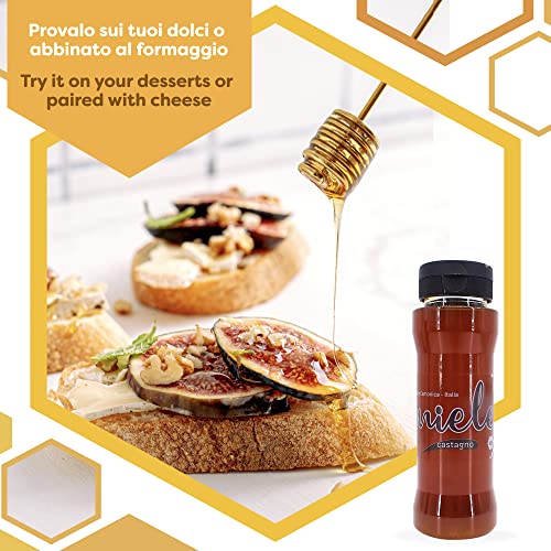ERBOTECH Miele Castagno Italiano in Contenitore Squezzer da 250 g, 100% Made in Italy, Miele Puro e Non Pastorizzato della Val Camonica
