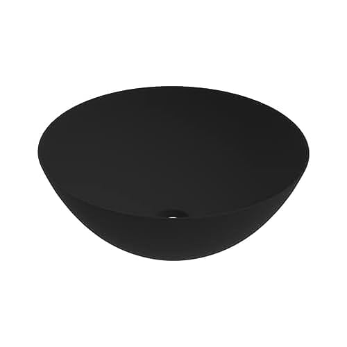 ERCOS Lavabo D'appoggio Circolare In Ceramica, Lavabo Bagno Colore Nero Opaco, Senza Troppopieno, Dimensioni 416x155 mm