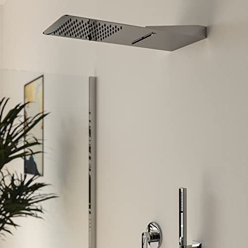 ERCOS Soffione Doccia A Sbalzo In Acciaio Inox Effetto Pioggia e Cascata, Soffione Doccia rettangolare 230X550 MM Ultra solltile 2 MM, Soffione Doccia Con Sistema Di Attacco Muro
