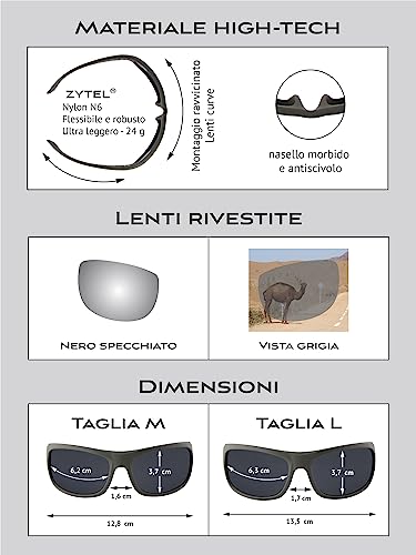 OCCHIALI DA SOLE SPORTIVI | Rivestiti in gomma e flessibili per massima comodità e aderenza perfetta. Tutti i giorni estivi, in acqua, in montagna e nella neve. Occhiali da sole disponibili in nero e marrone / grigio - anche vetri a specchio (blu, verde). Unisex per uomo e donna.