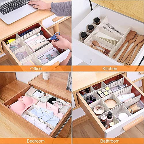 ERFGT 8 Pezzi Organizzatore per Cassetti Regolabile, Separatori Organizzatore, Divisori per Cassetti in Plastica, Separatori Cassetti, per Ufficio, Bagno, Cucina o Camera da Letto, Bianco