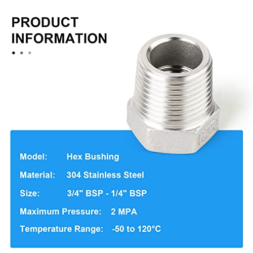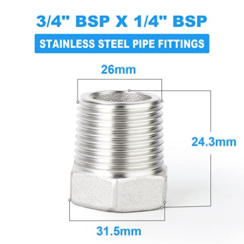 ERGAOBOY 2 pz 3/4 "maschio a 1/4" femmina BSP tubo adattatore raccordo 304 riduttore in acciaio inossidabile