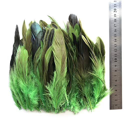 ERGEOB PANAX Gallo Piume Circa 100 Pezzi Lunghezza 12-18 cm, Ideale per Carnevale, Halloween, Artigianato, Handwerk, Fai-da-Te, Abbigliamento, Costumi Green