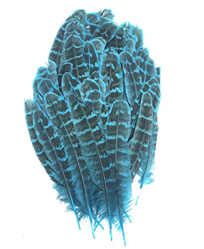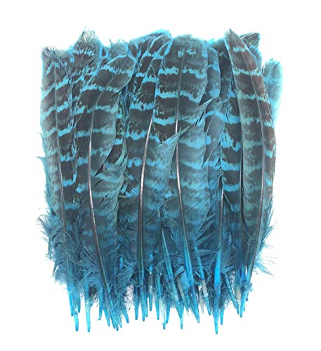 ERGEOB PANAX Nature Gallo Piuma 50 Pezzi, 10-15 cm di Lunghezza, Ideale per Carnevale, Halloween, Artigianato, Handwerk, bricolage, Abbigliamento, Costumi Indiani, Decorazione Blu