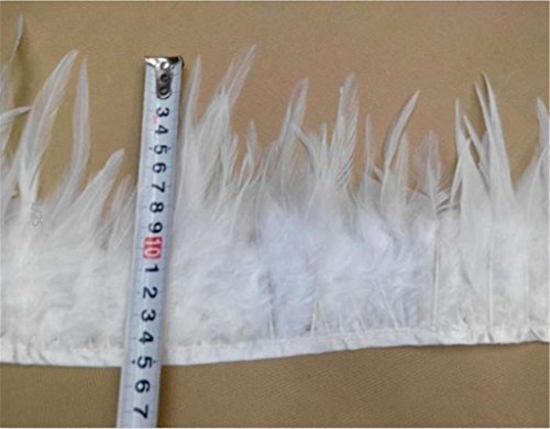 ERGEOB PANAX Piume di Gallo Strisce di Tessuto 2 Metri Lunghezza, Ideale per Carnevale, Halloween, Artigianato, Handwerk, Fai da Te, Abbigliamento, Costumi Bianco