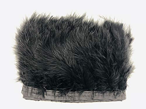 ERGEOB PANAX Strisce di Tessuto in Piuma di Tacchino 2 Metri, Ideale per Carnevale, Halloween, Artigianato, Handwerk, Fai-da-Te, Abbigliamento, Costumi Nero