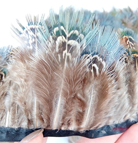 ERGEOB PANAX Strisce di Tessuto di Piume di Fagiano 2 Metri - Ideale per Carnevale, Halloween, Artigianato, Handwerk, bricolage, Abbigliamento, Costumi Verde