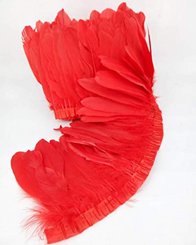 ERGEOB PANAX Strisce di Tessuto in Piume D'Oca 2 Metri Lunghezza, 29 Colori, Ideale per Carnevale, Halloween, Artigianato, Handwerk, bricolage, Abbigliamento, Costumi Rosso