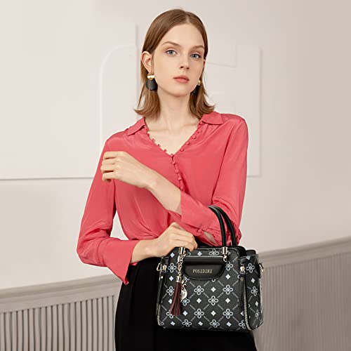 Ergocar Borsa a Mano Donna con Ciondolo in Nappe, Vintage Borsa con Manico in Alto, Moda Borsa Boston, Retrò Borse a Spalla Tracolla, Borsa Ufficio Lavoro Borsetta Donna, Nero