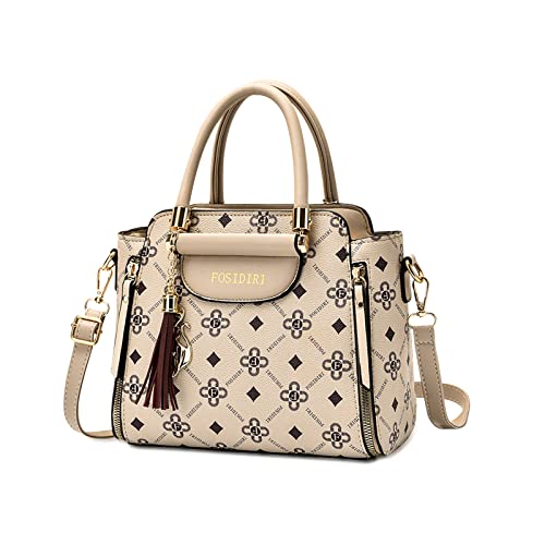 Ergocar Borsa a Mano Donna con Ciondolo in Nappe, Vintage Borsa con Manico in Alto, Moda Borsa Boston, Retrò Borse a Spalla Tracolla, Borsa Ufficio Lavoro Borsetta Donna, Beige