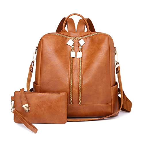 Ergocar Impermeabile Zaino da Donna 2 pezzi, Zaino Casual in Pelle, Archiviazione Multifunzionale Borse Donna a Spalla da Donna Moda con Tracolla Staccabile, Borse a Zainetto per Shopping Viaggio