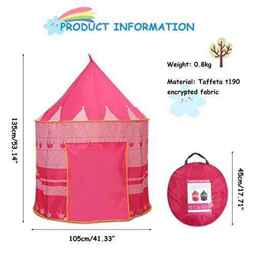 Ergocar Tenda da Gioco Castello da Principessa per Ragazze e Bambini Portatile Castello Principessa Tenda con Borsa da Trasporto da Regalo di compleanno (Rosa)