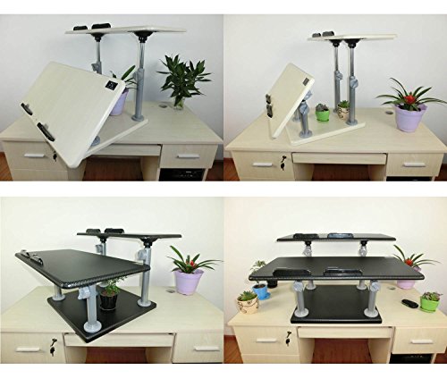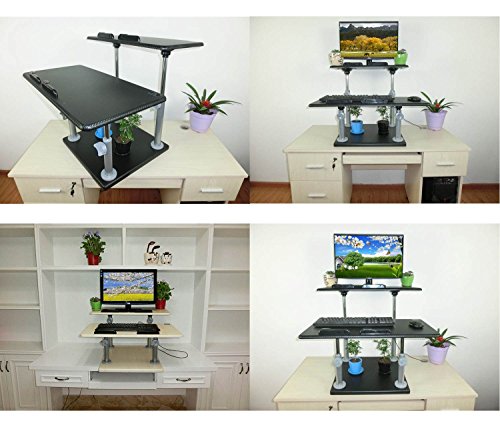 Piattaforma superiore può essere saldamente bloccato in posizione stabile e forte a qualsiasi altezza regolabile da 42 cm a 60 cm di distanza dal vostro tavolo, visualizzazione di qualsiasi dimensione del monitor del singolo e fermo sulla parte superiore.