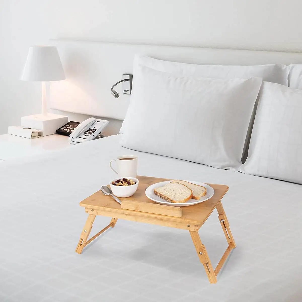 Ergonomics Adjustable Laptop Desk Pure Yellow Bamboo Table Foldable Breakfast Serving Bed Tray Cozy