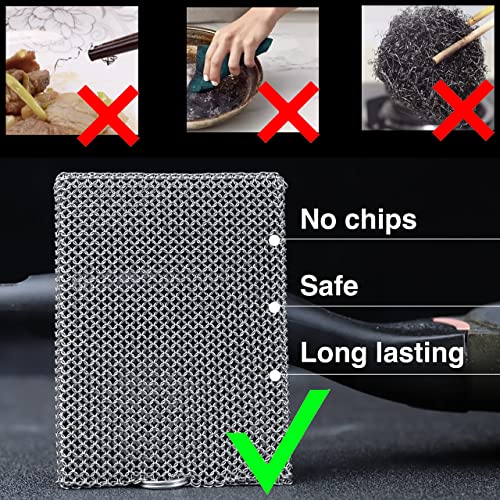 ERGONOW Scrubber per pulizia a catena, anello fine, in acciaio inossidabile 316, per pentole in ghisa, barbecue, piatti