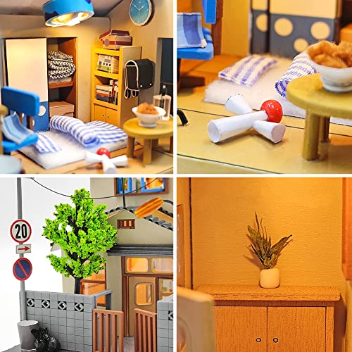 Erhumama Miniatura Giapponese Casa Delle Bambole Modello 3D In Legno Cucina Camera Da Letto Mobili Fai Da Te Bambole Casa Kit Con Copertura Polvere Compleanno Per