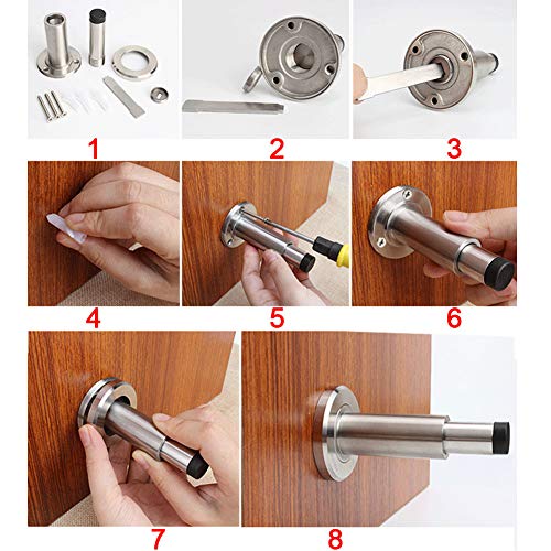 Eribell7 Fermaporta a parete in acciaio INOX resistente, regolabile con spessore extra + fermaporta in gomma per montaggio a parete, ceramica, piastra in legno, ecc.