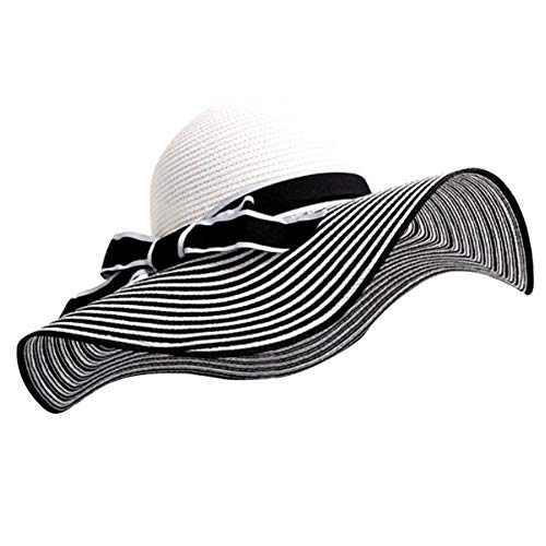 Ericcay Donna Donna Bowknot Cappello Cappello Elegante A A Righe Strisce Unico di Paglia Cappello Ampio A Vita Bassa Estivo Cappello Estivo Cappello da Sole Cappello da Spiaggia Cappello da