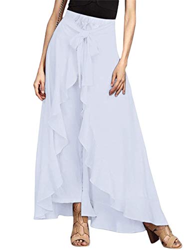 Ericcay Donna Ruffles Pantaloni A Vita Alta Split Maxi Lungo Chiffon Palazzo Sovrapposizione Culottes Gonna Estate A Line dell'Annata Gonne Ragazze Elegante (Color: Bianca, Taglia Unica: XXL)