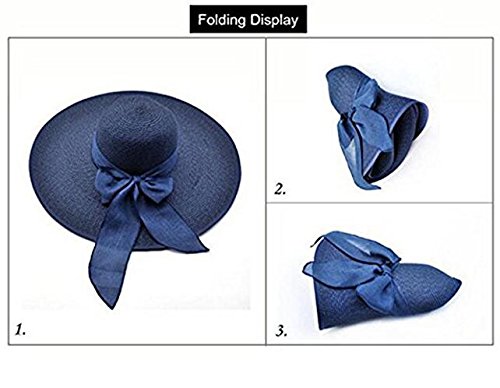 Ericotry - Cappello da spiaggia da donna, con fiocco grande e fiocco in paglia, da spiaggia, con ampia floppy, pieghevole, a tesa grande, UPF 50+, per feste e viaggi (blu scuro)