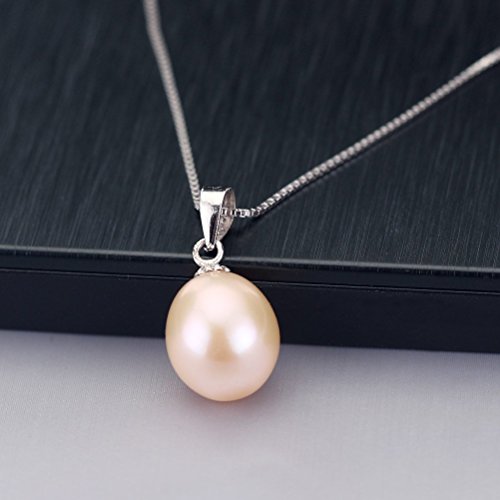 Erimaki rosa goccia d' acqua dolce coltivate singola perla ciondolo collana girocollo donna con catena in argento Sterling 925, 45,7 cm