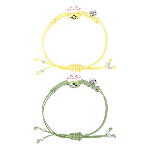 ERINGOGO 2 Pz Bracciale Con Ciondoli in Ceramica Feng Shui Bracciale Gatto in Ceramica Fortunata Bracciale Da Donna Corda Da Polso Intrecciata a Mano Bracciali Kawaii Alunno Fresco Cabala