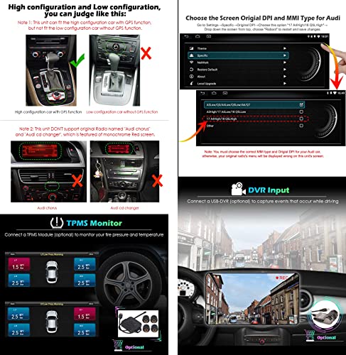 【Android 11.0, 4GB RAM + 64GB ROM】10,25 pollici Autoradio con navigazione per configurazione alta Audi A4 / A5 / B8 / S4 / S5 (2009-2016) con funzione GPS. CPU: Quad Core 4 * Cortex A55 1,5 GHz, RAM: 4GB, ROM: 64GB Supporta 2 USB fino a 2 * 128 GB di memoria estesa. Schermo IPS ultra HD super ampio con una risoluzione di 1280 * 480 pixel. Questa autoradio ha un decoder Canbus integrato. Ha anche un design unico che si adatta al cruscotto originale per ottenere un look perfettamente integrato.
