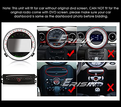 2. Questa autoradio si adatta alla BMW Mini Cooper 2006-2013, NON PU adattarsi alla radio originale dotata di schermo DVD, si prega di controllare le dimensioni del cruscotto e assicurarsi che il cruscotto dell'auto sia uguale alla foto del cruscotto nel nostro elenco prima di fare offerte.