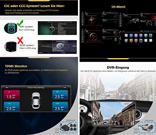 【Android 12.0 + 4GB RAM + 64GB ROM】 Autoradio da 10,25 pollici per BMW X5 E70 X6 E71 con sistema CCC. CPU: 8-core MT8581 1600 MHz Cortex A55, Sistema operativo: Android 12.0, offre un'esperienza utente più veloce e più fluida. Memoria: 4GB, ROM: 64GB. Supporta 2 USB fino a 2 * 128GB di memoria estesa. Schermo IPS Ultra Wide da 10,25 pollici con risoluzione di 1280 * 480 pixel. Decoder Can-bus incorporato, supporta le funzioni di controllo del volante e la manopola Idrive originale.