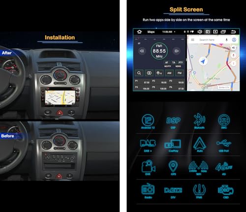 ✪【Android 12, 8-Core, 4GB RAM+64GB ROM】Autoradio DVD GPS da 7 pollici per Renault Megane Ⅱ con il potente sistema Android 12 di ultima generazione, è possibile godere di un'esperienza utente fluida e reattiva. Avvio rapido, touchscreen IPS capacitivo. Architettura CPU 2*A75+6*A55 64-bit 1800MHz. 2 schede/3 USB fino a 5*256GB di memoria espansa. Suono stereo 4*48W e subwoofer supportati dall'amplificatore STMicroelectronics TDA7851 integrato. Integrato,DVD,USB,RDS,WiFi.