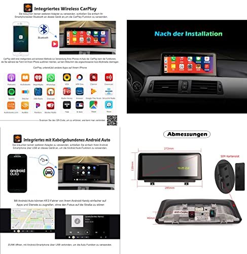 【Android 11.0, 4GB RAM + 64GB ROM】Autoradio Android 11.0 da 10,25 pollici con navigatore per BMW Serie 1 F20 F21 2 F23 con sistema NBT. CPU: Quad Core 4 * Cortex A55 1,5 GHz, RAM: 4GB, ROM 64GB Supporta 2 USB fino a 2 * 128 GB di memoria estesa. Schermo IPS ultra HD super ampio con una risoluzione di 1280 * 480 pixel. Questa autoradio ha un decoder Canbus integrato. Ha anche un design esclusivo che si adatta al cruscotto originale per ottenere un look perfettamente integrato.