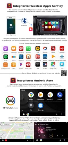 【Wireless CarPlay e Android Auto e DSP cablato】 Collega semplicemente il tuo iPhone tramite Bluetooth, smartphone Android tramite USB a questa radio, quindi puoi effettuare telefonate, controllare i messaggi vocali, inviare e ricevere messaggi di testo, ascoltare musica facilmente. e usa la navigazione online per concentrarti sulla strada. Più intelligente e più sicuro! Amplificatore DSP integrato, che offre l'effetto sonoro perfetto per la tua auto.