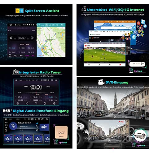 ✪【3G / 4G & WiFi】Questa autoradio ha una funzione WiFi integrata che ti consente di navigare in Internet liberamente, in modo da poter scaricare migliaia di applicazioni dal Play Store. Puoi anche sfogliare le notizie e guardare i video online sempre e ovunque. Tuttavia, il dongle 3G/4G richiede un acquisto aggiuntivo. La nostra autoradio Android con sistema di navigazione è il tuo compagno di guida divertente e migliore.