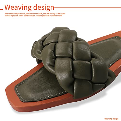 ERLINGO Sandali piatti da donna, aperti a punta quadrata, stile casual, da donna, senza lacci, intrecciati, comodi da passeggio, Verde, 40 EU