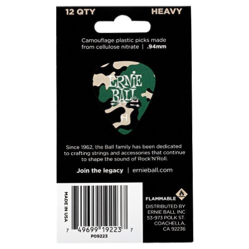 Ernie Ball, P09223, Plettro mimetico in cellulosa, Heavy, confezione da 12