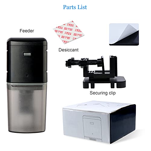 【Capacità】 il serbatoio di accumulo ha una capacità compresa tra 165 ml e 170 ml, da circa 140 g a 160 g. La scatola di plastica traslucida consente agli utenti di vedere facilmente e chiaramente la quantità di mangime rimanente nel serbatoio di stoccaggio, il che è conveniente per il rifornimento tempestivo.
