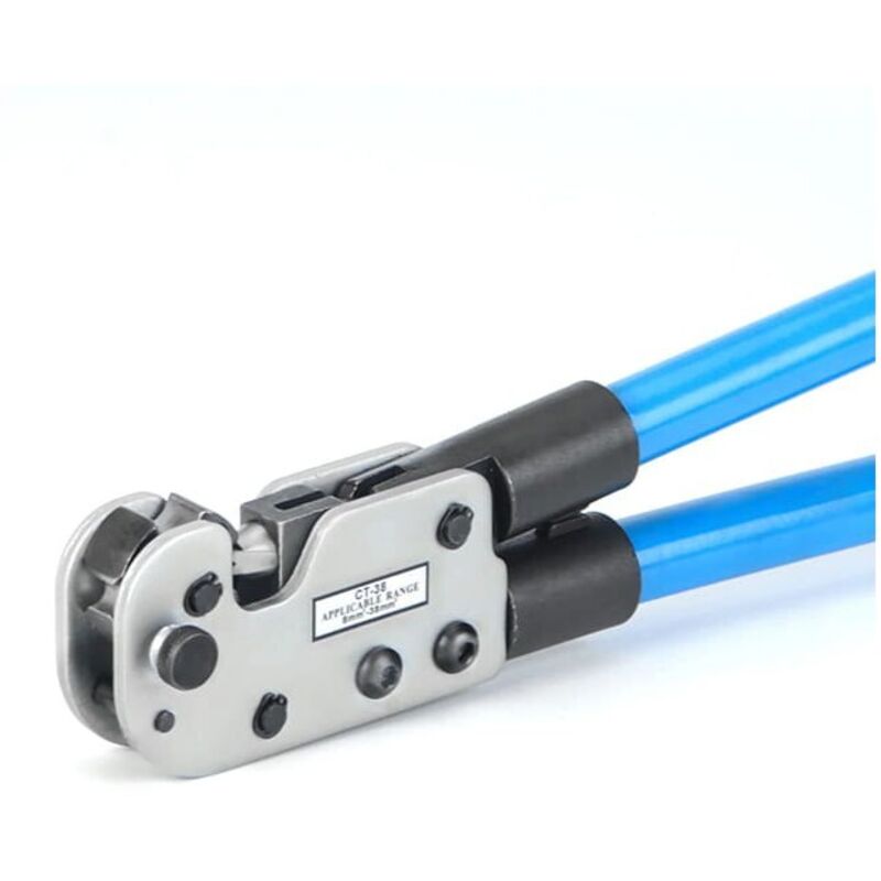 Codice ErreBi: 56738 Produttore: ErreBi Vendita al pezzo Strumenti di crimpatura per capicorda per cavi per batteria e saldatore 8AWG-3/0AWG(8-150mm2) Pinza a crimpare serie CT applicabile per crimpatura senza saldatura conforme alla connessione elettrica standard. Il materiale degli stampi è un acciaio per utensili SK-5 accurato con una lunga durata. Regolare il diametro della ganascia in base alle dimensioni dei terminali. Specifica: - Colore blu - Quantità confezione articolo: 1 - Batterie incluse? NO - Batterie necessarie? NO - Gamma di applicazioni Large Y.O. terminali - Capacità: 8-38 mm2 - Lunghezza: 570 mm / 22,5 pollici - Peso dell'articolo: 2,2 kg / 4,9 libbre - Perfetto per cavi batteria e saldatrice - Il materiale degli stampi è un acciaio per utensili SK-5 accurato con una lunga durata Scheda Tecnica Tipologia di prodotto: Pinza