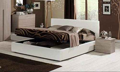 ERREBI Letto Matrimoniale con Contenitore Rigido in Ecopelle Bianca con Rete a doghe