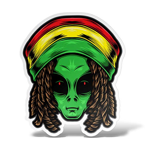 Erreinge Sticker Alieno Marijuana Weed Reggae Jamaica Adesivo Sagomato in PVC per Decalcomania Parete Murale Auto Moto Casco Camper Laptop - cm 25