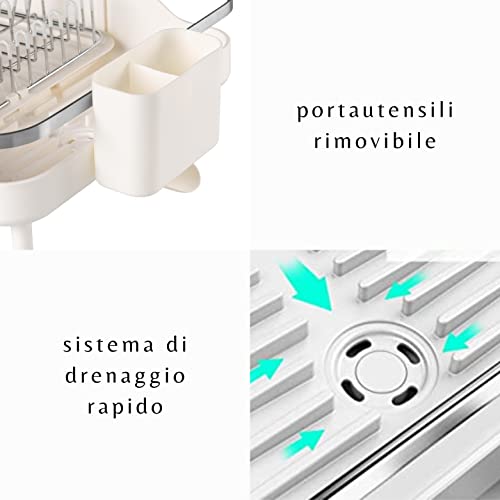 FACILE DA RIMUOVERE E PULIRE: É possibile rimuovere facilmente tutte le parti che compongono lo scolapiatti, compresi lo stendino e il portaposate, rendendo il processo di pulizia molto più semplice.