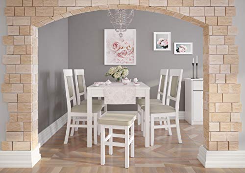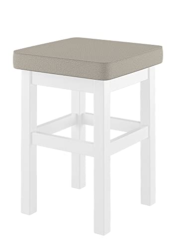 Erst-Holz Lineare Design per Sgabello Imbottito Bianco in Pino per Cucina e Sala da Pranzo V-90.71-41WP, Colore di stuffa:Taupe