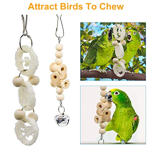 【Sicuro e resistente】 Questi giocattoli per pappagalli sono realizzati in legno naturale massiccio, senza aggiunta di ingredienti, che è sicuro per gli uccelli e innocuo per l'ambiente. È collegato da fili di ferro duro nel mezzo, che è resistente e non facile da rompere e danneggiare. La superficie è lucidata con precisione per ottenere una superficie liscia e non spinosa, quindi non danneggerà il tuo uccellino.